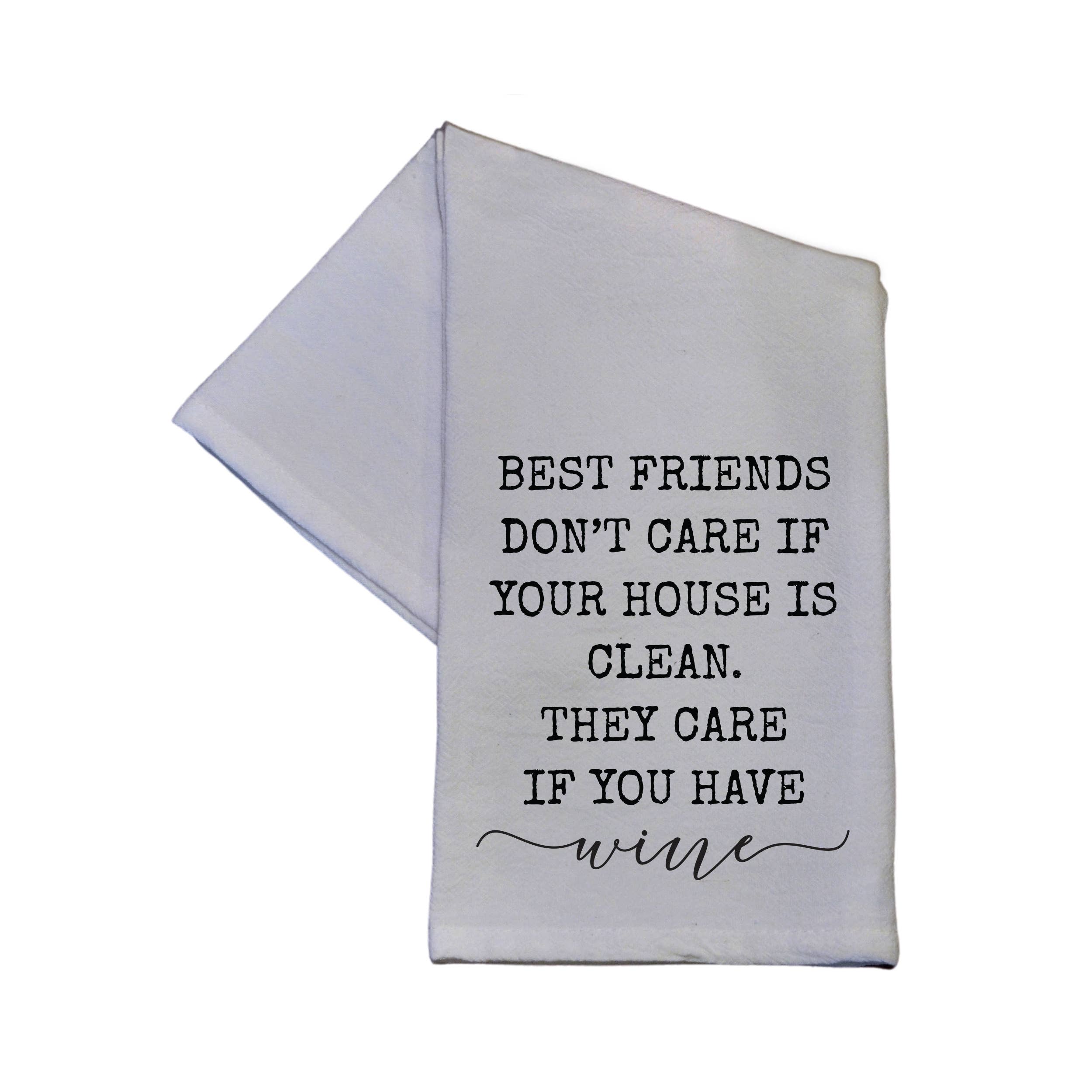 Best Friends Don't Care I Your House Is Clean Tea Towel