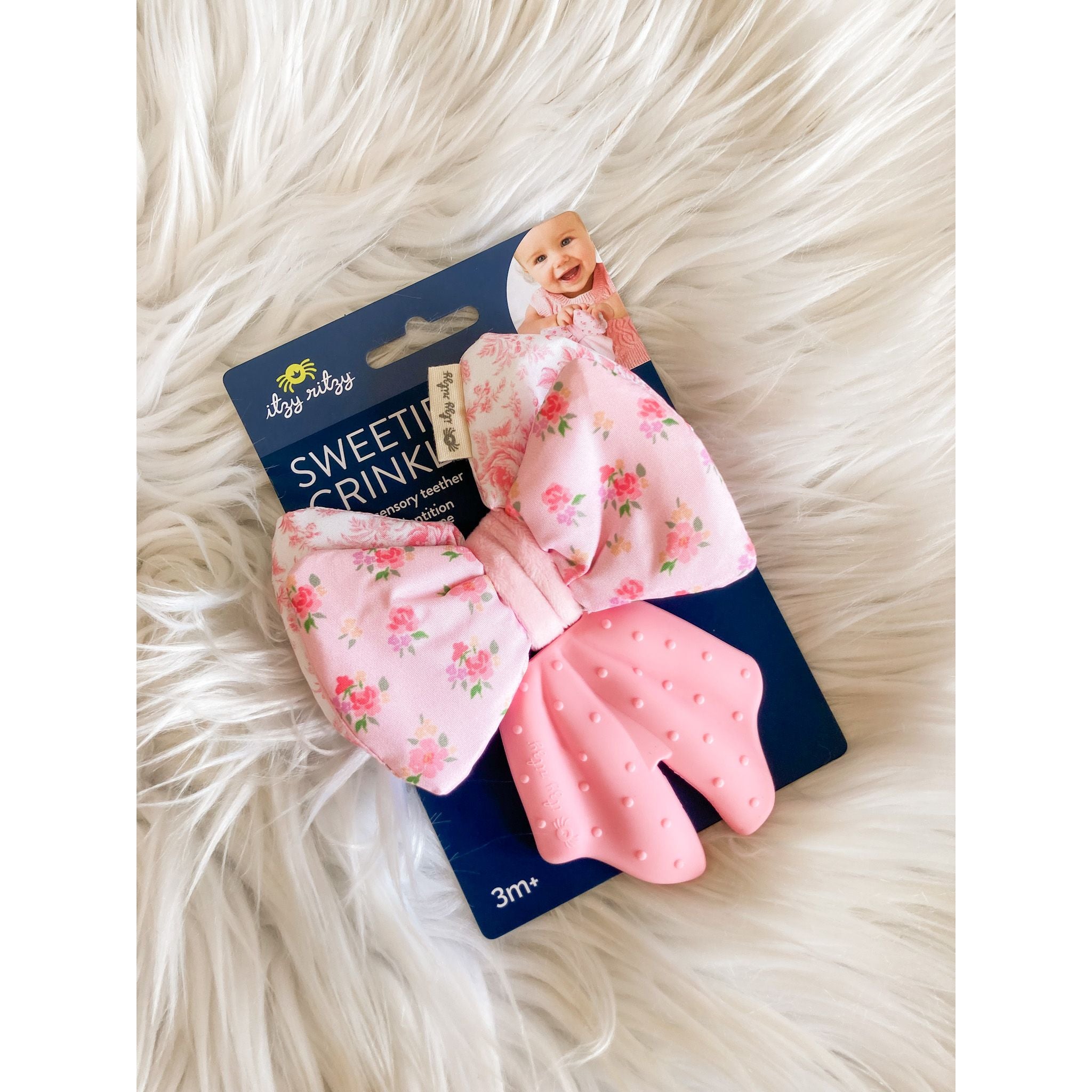 Get ready for double the fun with the Sweetie Crinkle™! This adorable essential combines a soothing silicone teether with soft plush and crinkle sounds. It is sure to delight your little one’s senses!