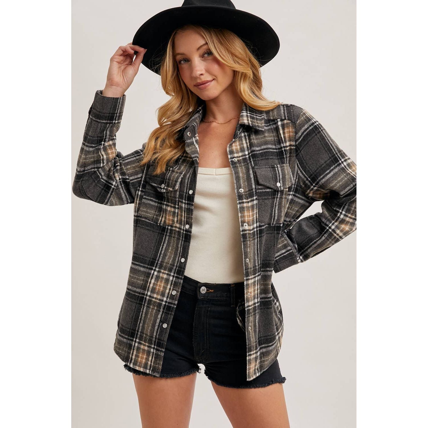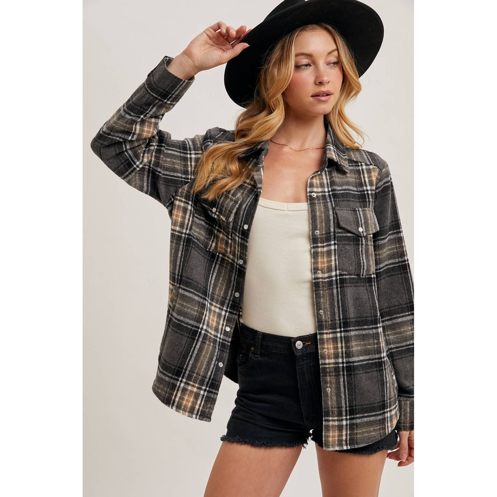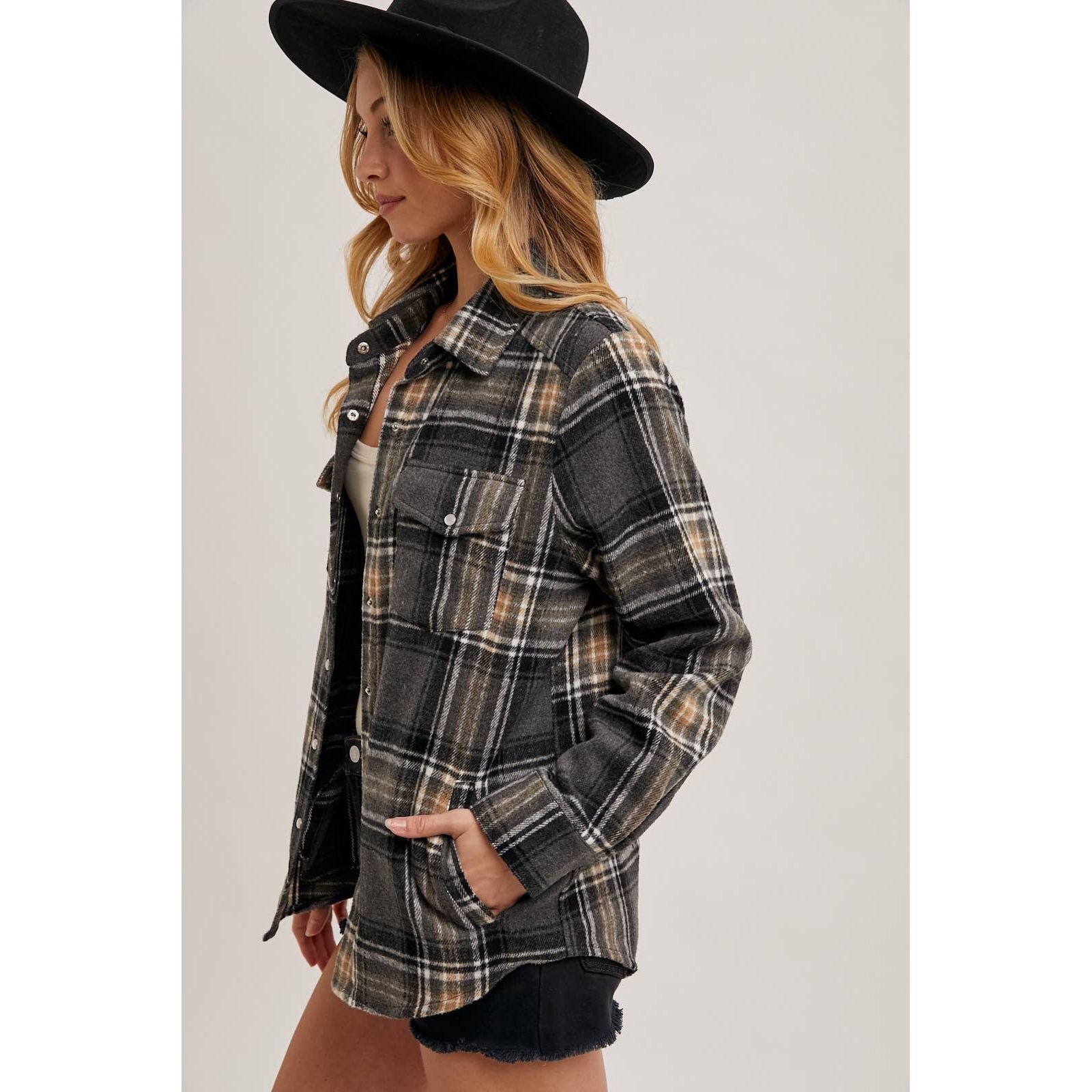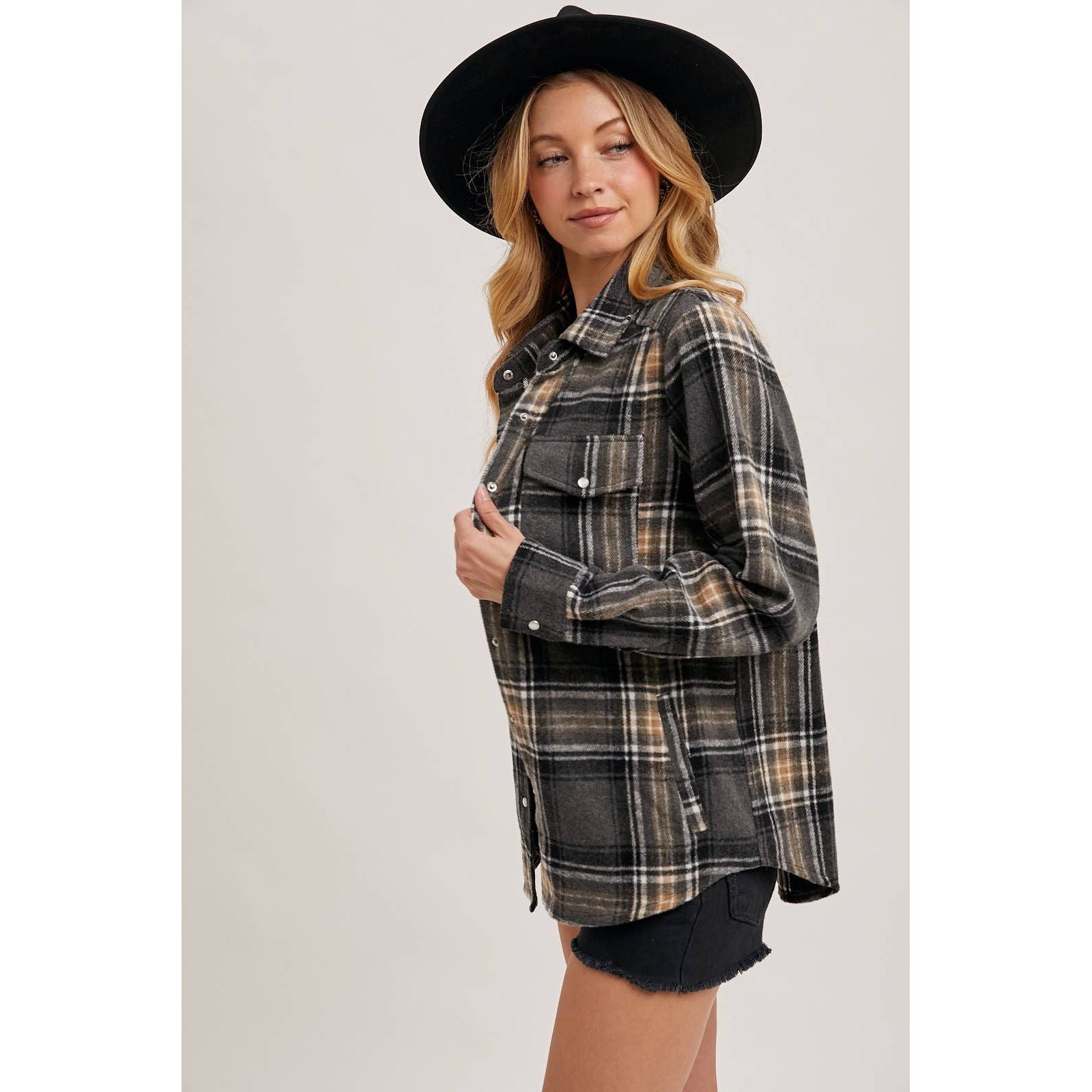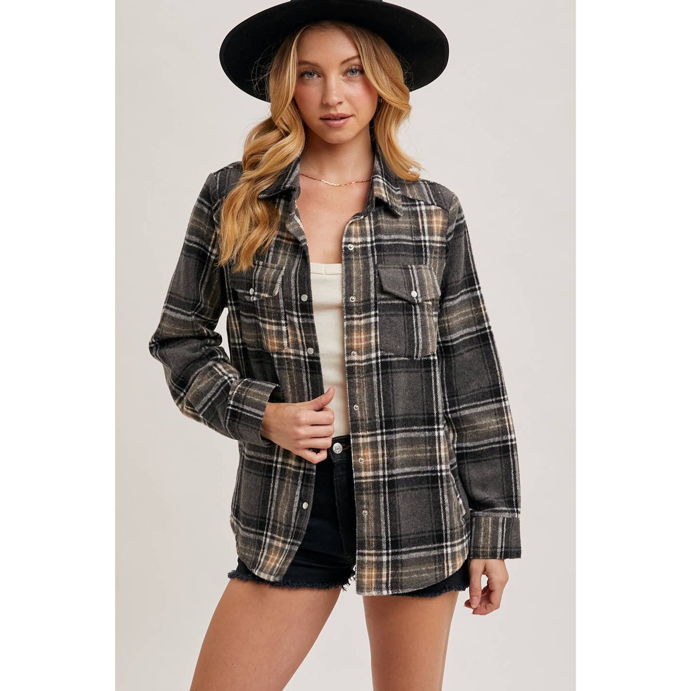 Plaid Button-Down Shacket | BI-34