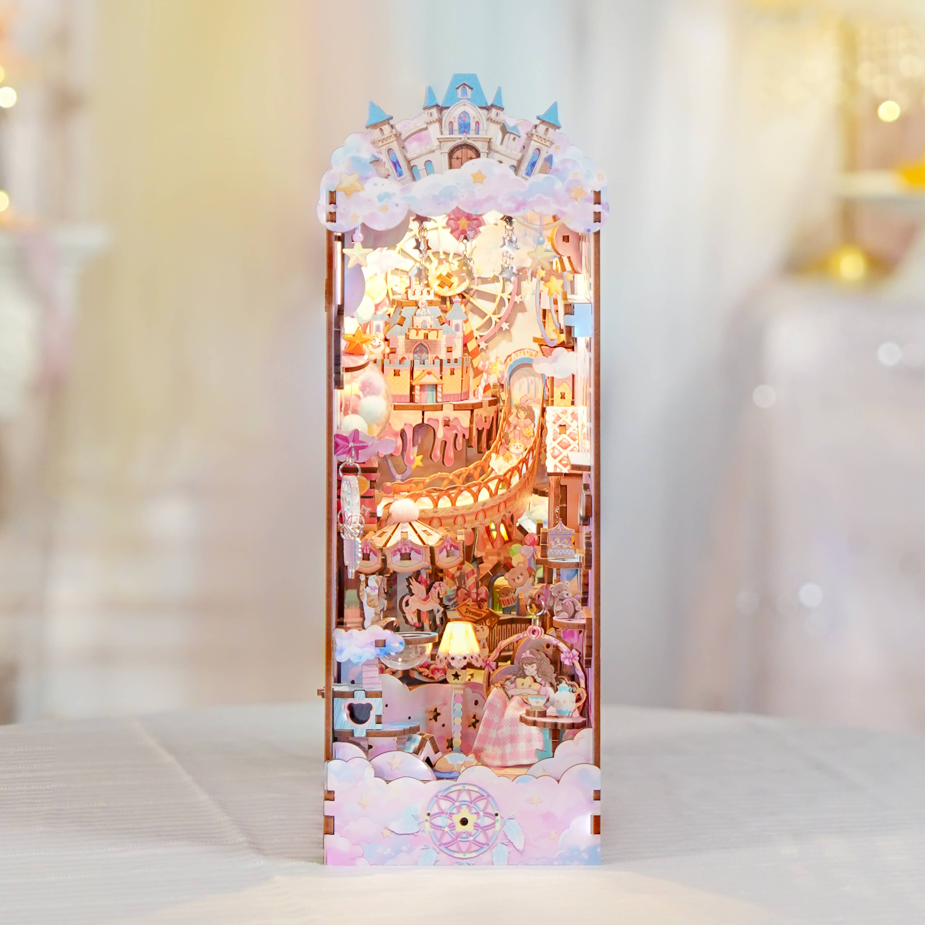 Step Into a Whimsical Wonderland. Bring the magic of the fairground to your bookshelf with the Sweet Dream DIY Book Nook Kit. This enchanting miniature world captures the nostalgic joy of a midnight carnival, tucked away between your favorite stories.