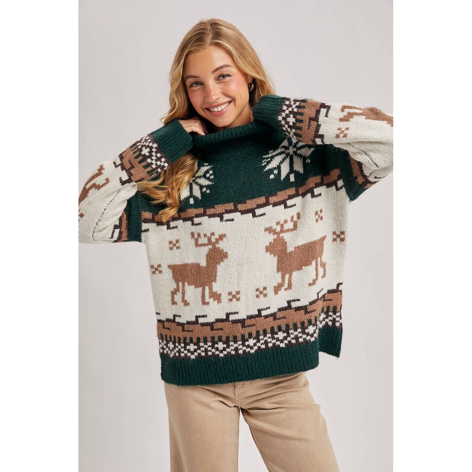 Nordic Reindeer Turtleneck Sweater | BI-32