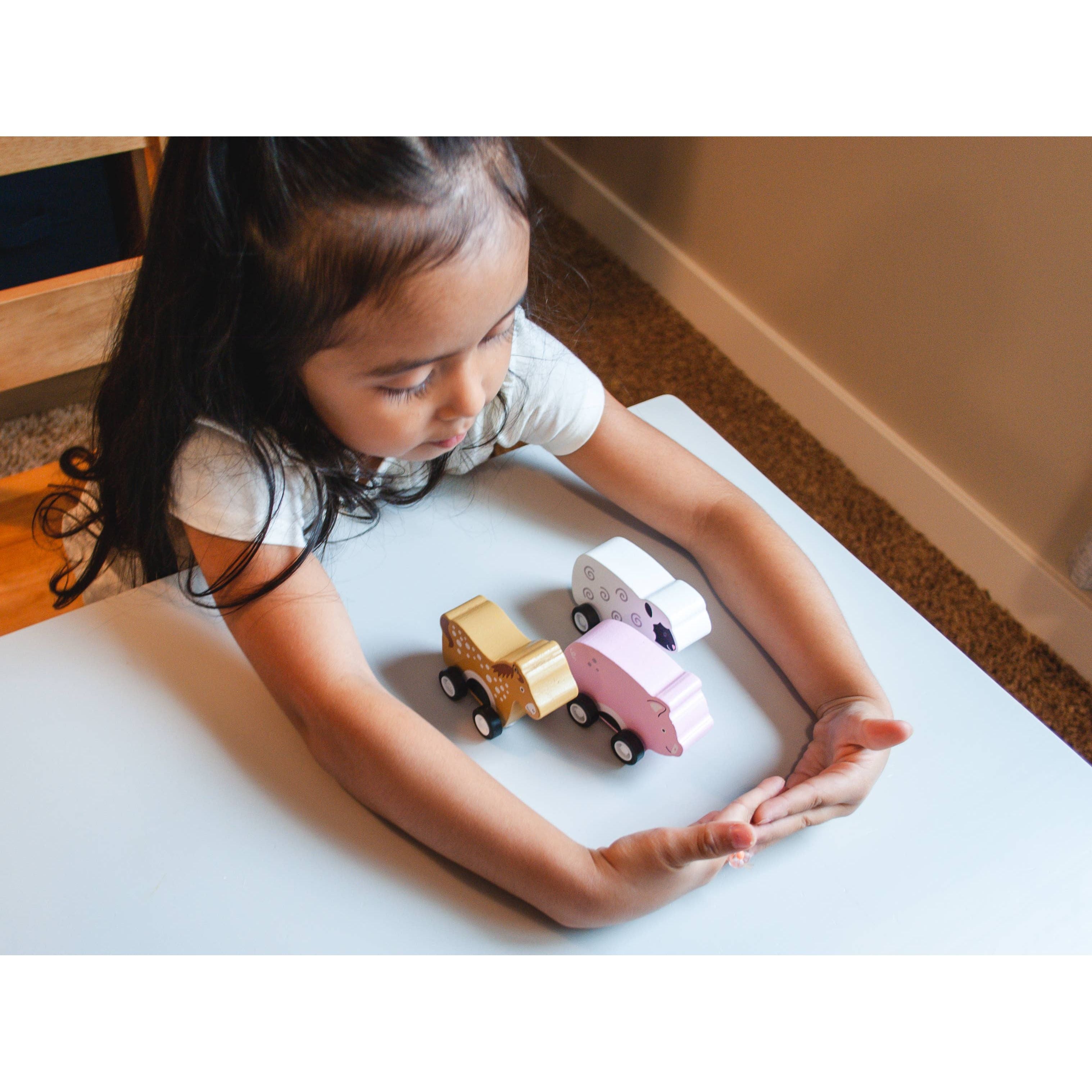 Farmyard fun is on the move! Our beloved Mini Barnyard Rollers are back and better than ever — now as pull-back racers with fresh new artwork. These adorable wooden animals are ready to roam the farm — just pull them back and watch them race ahead! Each set includes a pig, horse, cow, dog, and sheep, perfectly sized for little hands and endless giggles.
