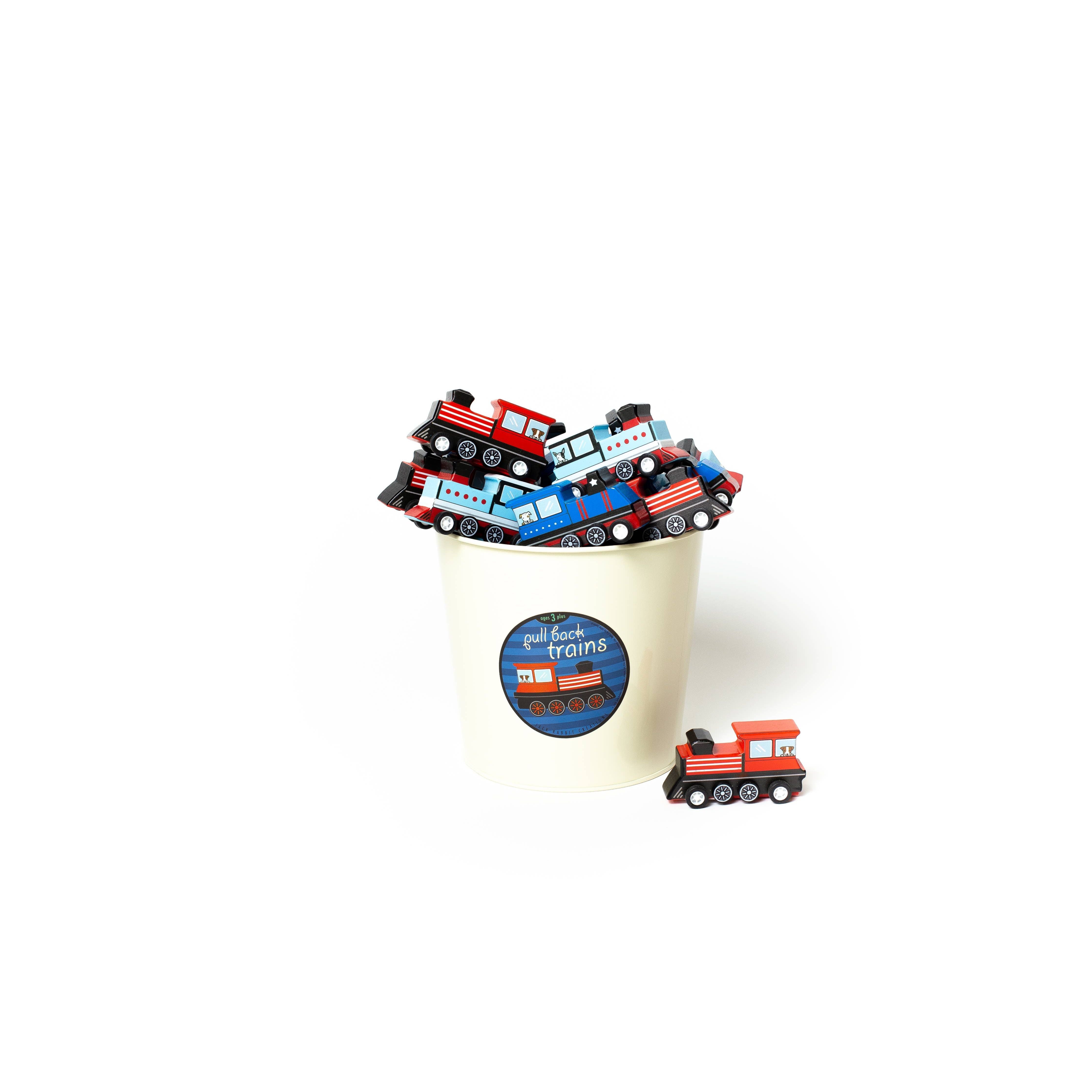 All aboard for endless fun! These colorful wooden pull-back trains are perfectly sized for little hands and big imaginations. Just pull them back and release to watch them chug along the track—no batteries required! With smooth edges, bright colors, and easy-to-grip design, they’re a delightful way to encourage coordination and imaginative play for busy toddlers on the go.