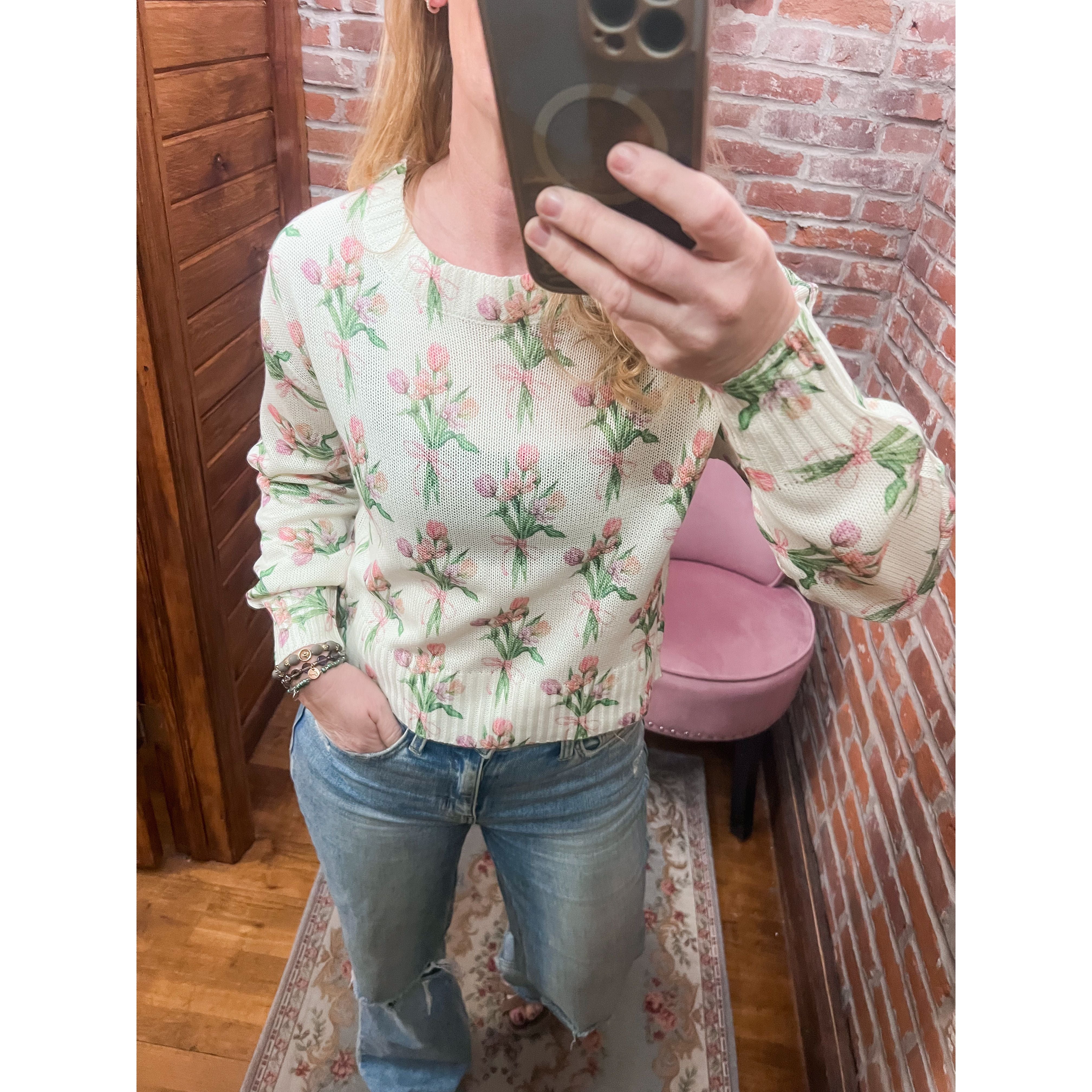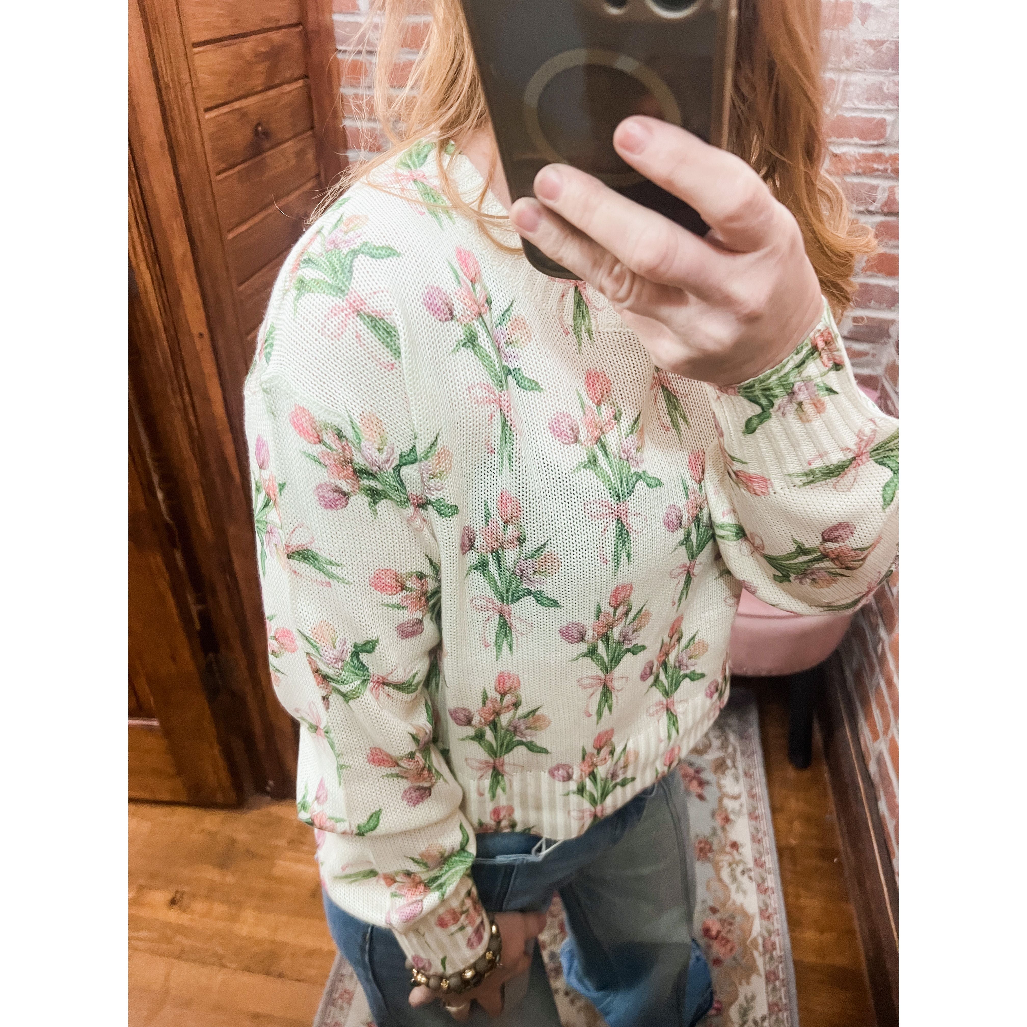 Fresh, feminine, and made for the changing seasons — the Garden Grace Sweater is the perfect layer for spring days. Designed in a soft, lightweight knit, this long-sleeved sweater features a delicate floral print that adds just the right touch of charm to your everyday wardrobe.