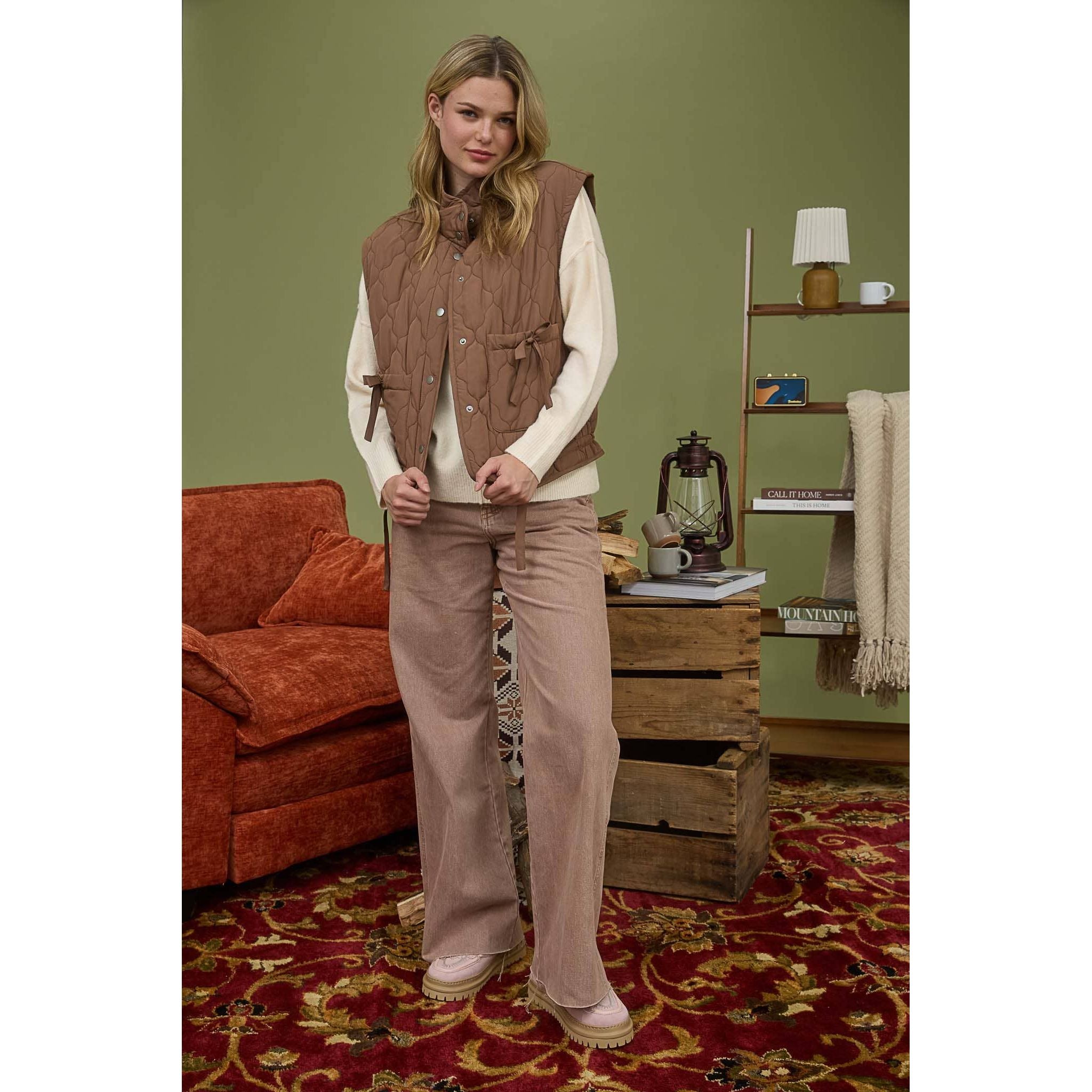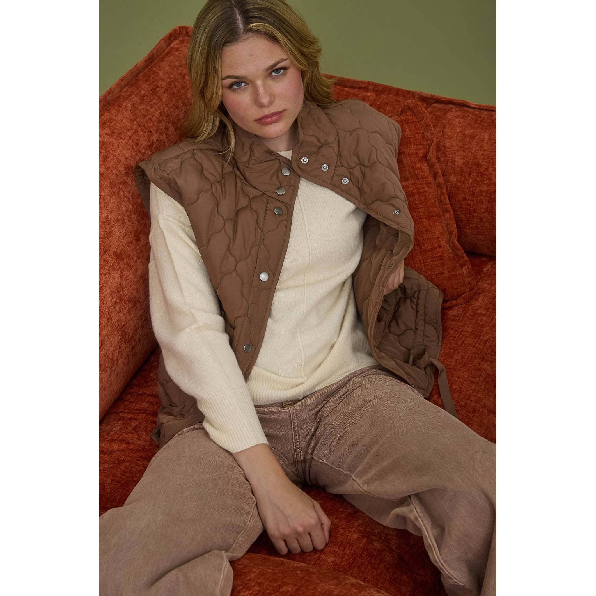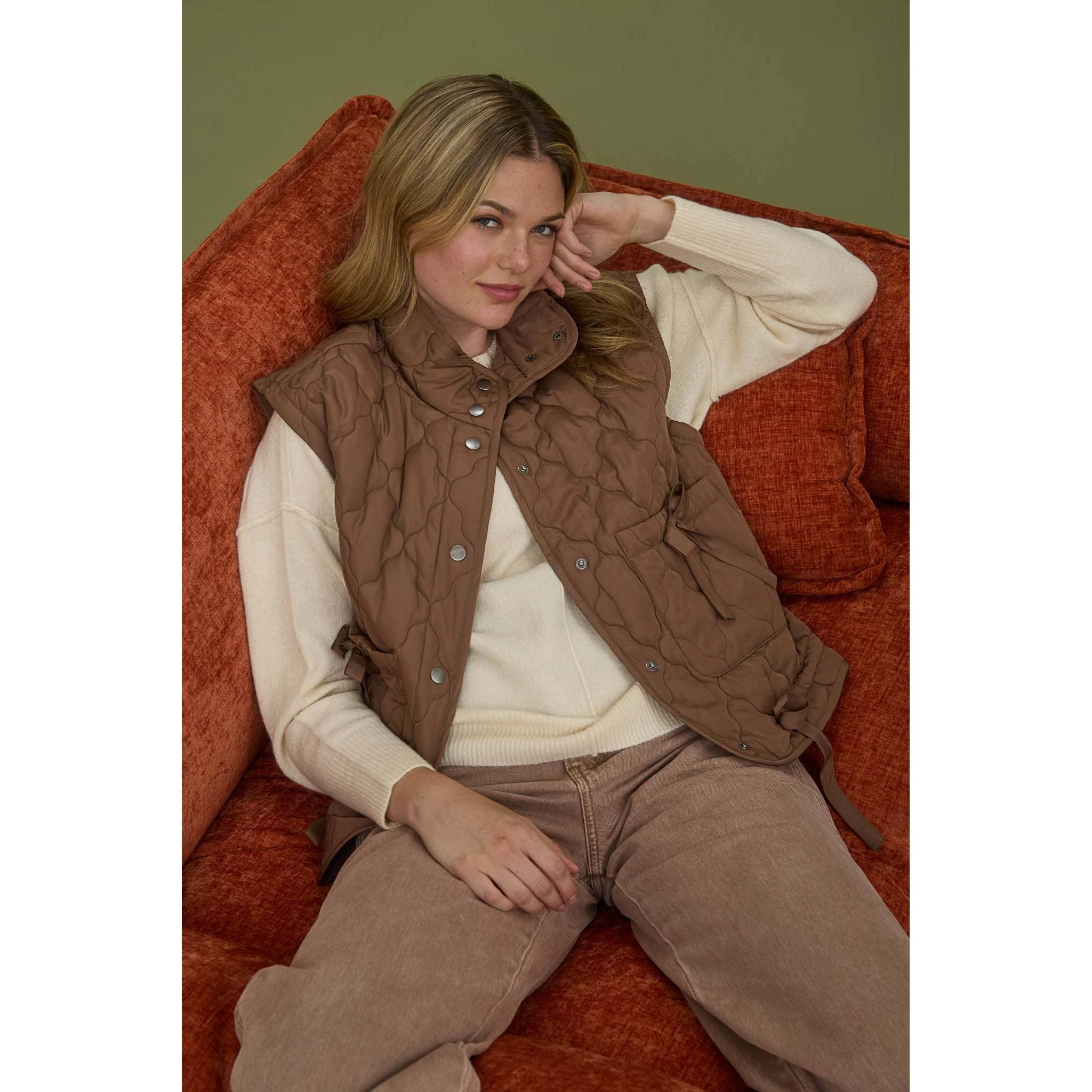 Stay warm without sacrificing style in the Everest Trail Quilted Puffer Vest. Designed with a sleek mock neckline, snap button-front closure, and adjustable tie detail, this vest brings both function and fashion to your cold-weather wardrobe. The quilted puffer pattern adds cozy insulation, while side pockets keep your essentials close. Fully lined for comfort, it’s the perfect layering piece for crisp mornings and chilly adventures.