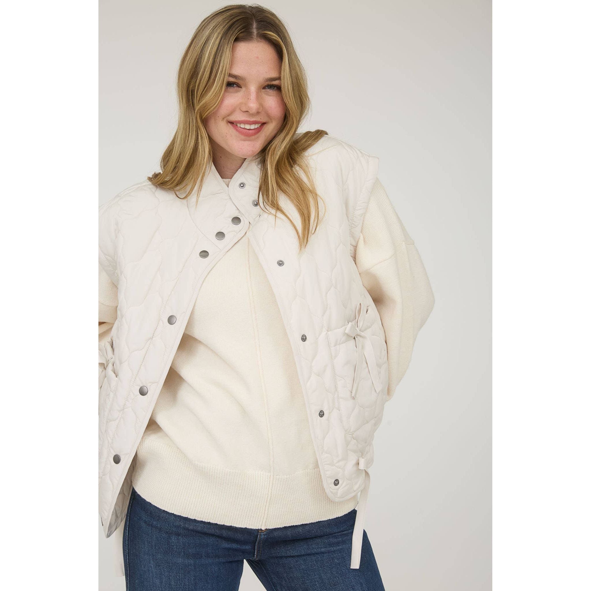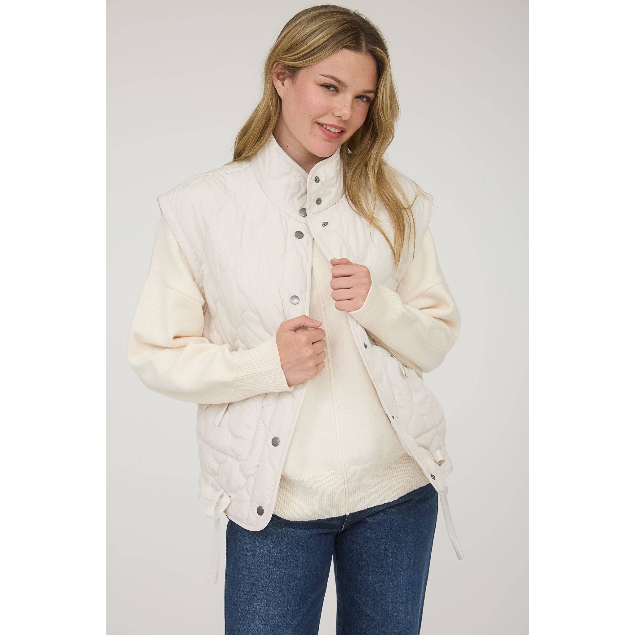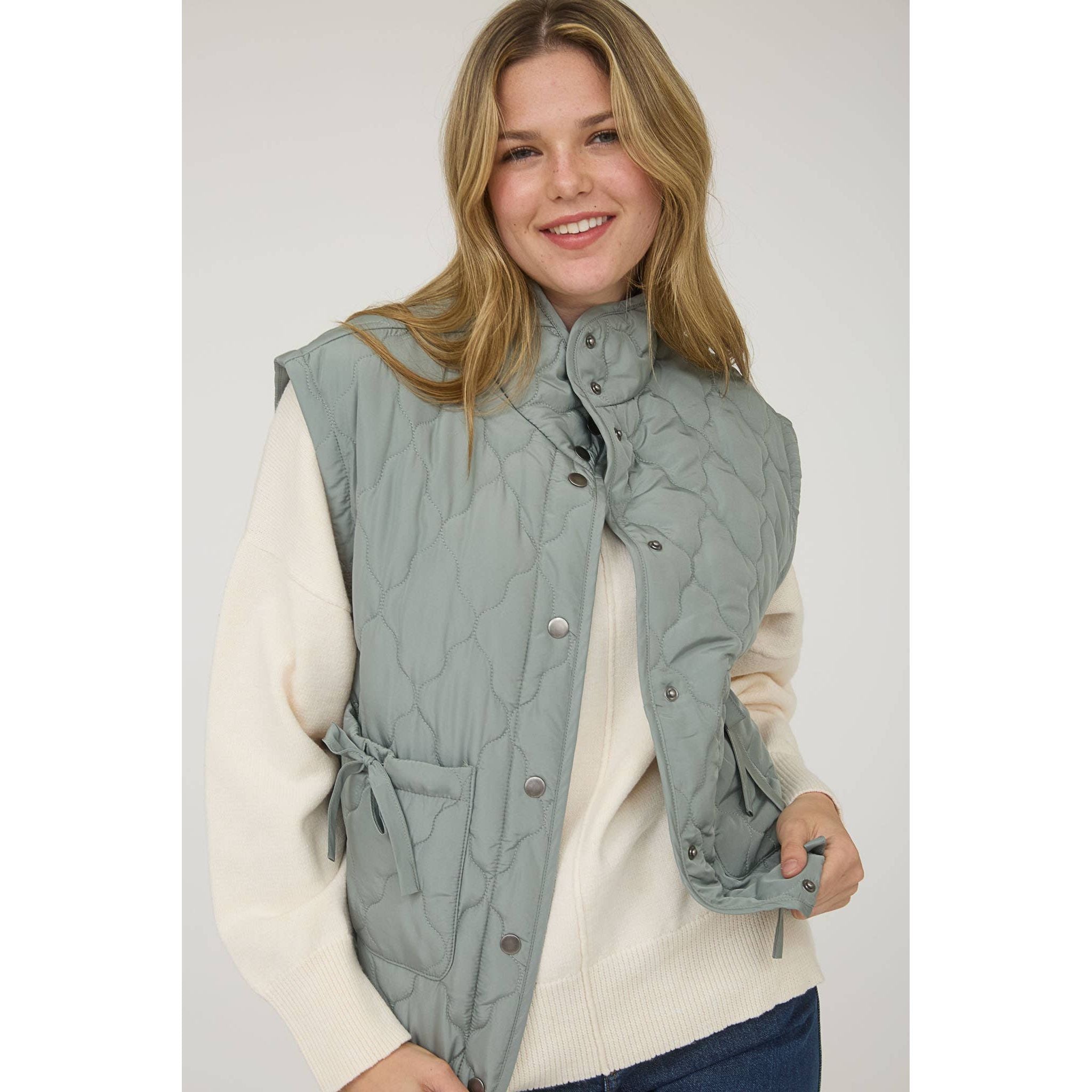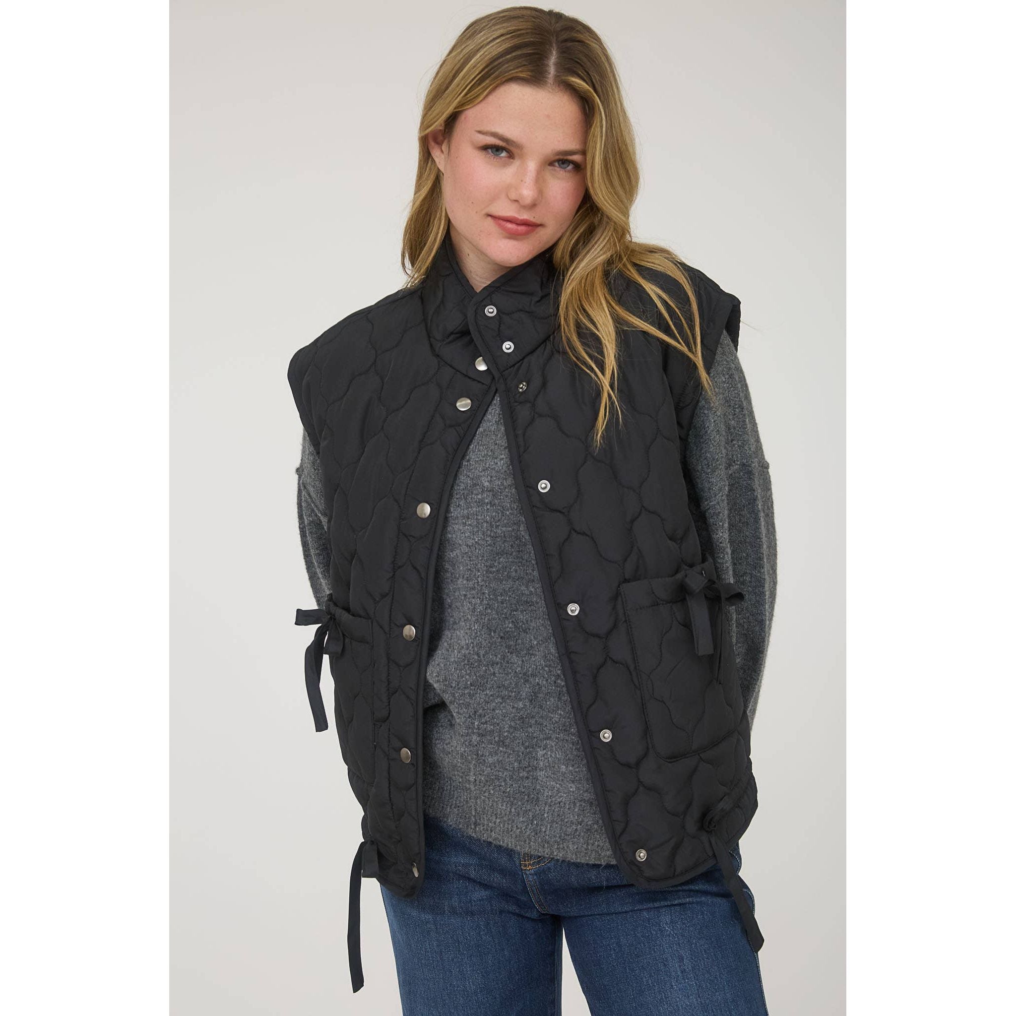 Stay warm without sacrificing style in the Everest Trail Quilted Puffer Vest. Designed with a sleek mock neckline, snap button-front closure, and adjustable tie detail, this vest brings both function and fashion to your cold-weather wardrobe. The quilted puffer pattern adds cozy insulation, while side pockets keep your essentials close. Fully lined for comfort, it’s the perfect layering piece for crisp mornings and chilly adventures.
