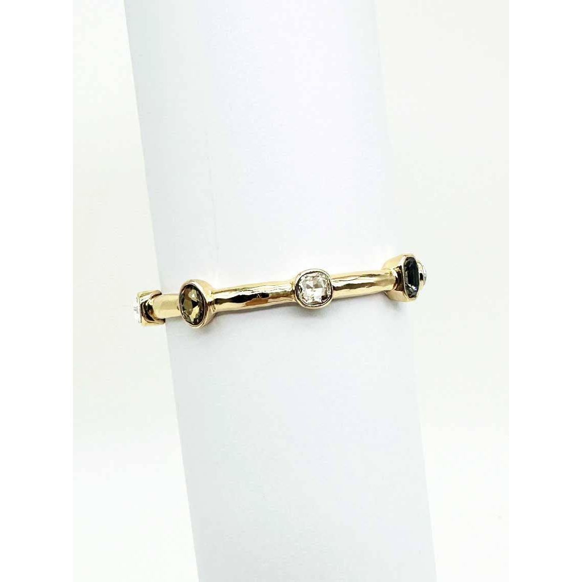 Black Diamond Crystal on Gold Bar Stretch Bracelet