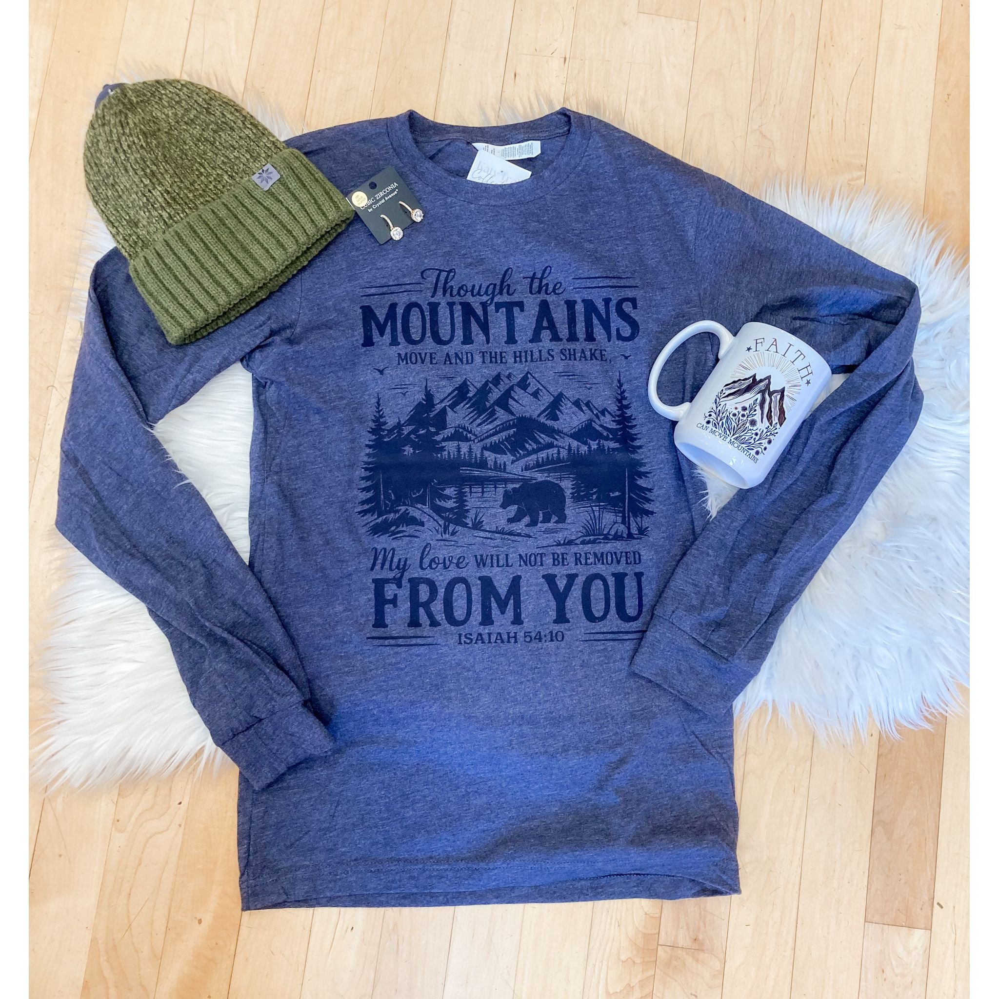 Soft, faith-filled, and designed for everyday comfort, this long-sleeve graphic tee is a reminder of God’s unwavering love. Featuring the promise from Isaiah 54:10— “Though the mountains be shaken… my unfailing love for you will not be shaken.” —this tee blends timeless style with a message your customers will carry close to their hearts. Printed in-house on your favorite super-soft unisex long sleeve, it’s perfect for layering, gifting, or wearing year-round.