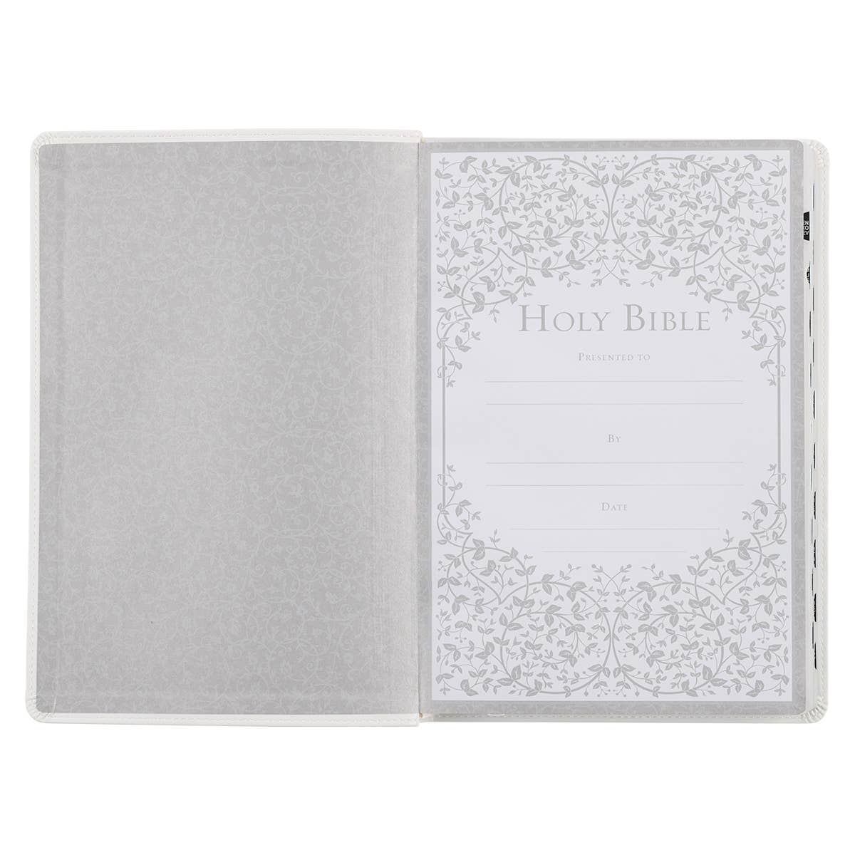 White Faux Leather Large Print Thinline King James Version Bible with Thumb Index