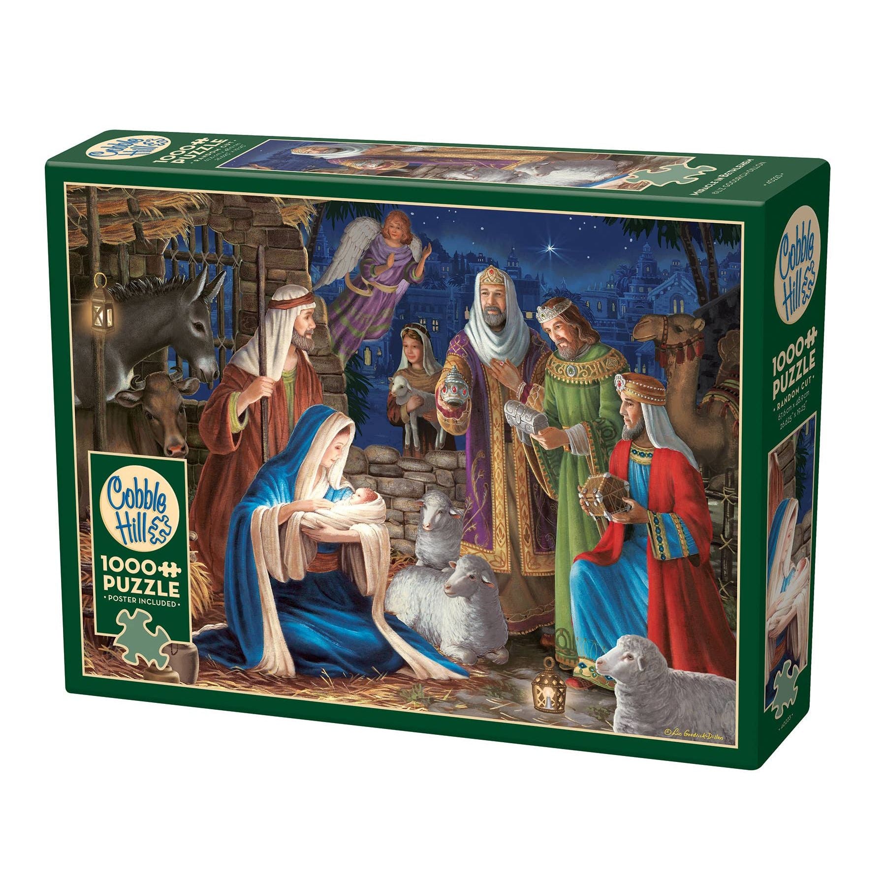 Celebrate the wonder of the Nativity with Miracle in Bethlehem, a beautifully illustrated 1000-piece puzzle that captures the holy night when baby Jesus was born and the three magi arrived bearing gifts of frankincense, myrrh, and gold. A meaningful activity for the holiday season — and a stunning piece to frame once finished.