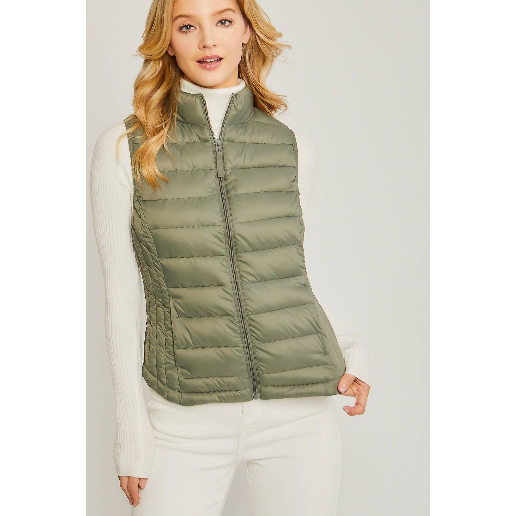 Stay warm without the bulk in this ultra-lightweight padded puffer vest. Designed for effortless layering, it features a slim, contoured fit and a sleek stand-up collar for a modern touch. The included carrying pouch makes it easy to pack and go—perfect for travel, outdoor adventures, or everyday errands. Lightly padded for just-right warmth and crafted from durable, high-quality nylon, this vest combines comfort, function, and style in one essential layer.