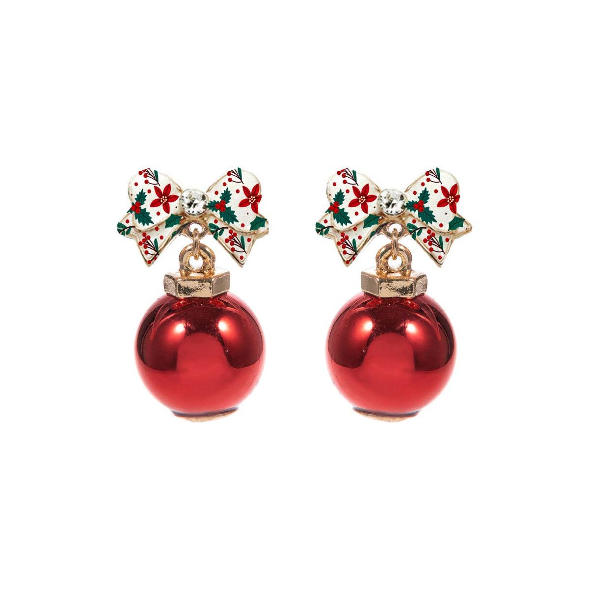 Bring festive cheer to your holiday style with these charming earrings. Featuring a shiny red ornament drop accented by a playful gold bow, they strike the perfect balance of holiday sparkle and sophistication. At 1.25", they’re the ideal size for both everyday seasonal wear and holiday parties. Lightweight and festive, they make a delightful gift or accessory for the season.