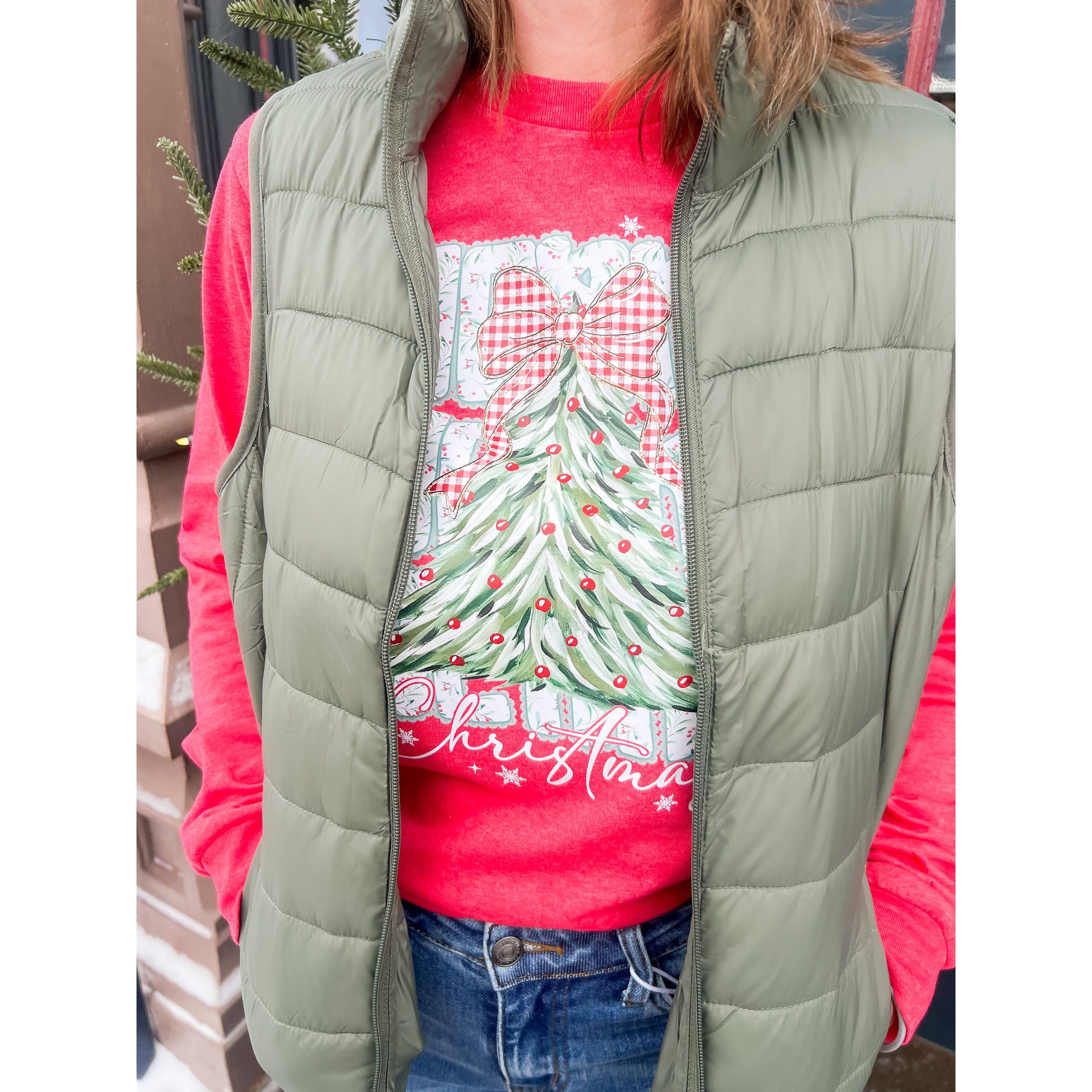 Cozy, cheerful, and perfectly festive — this long-sleeve graphic tee brings that classic Christmas charm to your everyday holiday wardrobe. Featuring a merry Christmas tree design printed in-house on your softest long-sleeve tee, it’s the perfect blend of comfort and seasonal style. Dress it up with denim and cardigans or keep it casual for tree-trimming, cocoa nights, and Christmas shopping on Main Street.